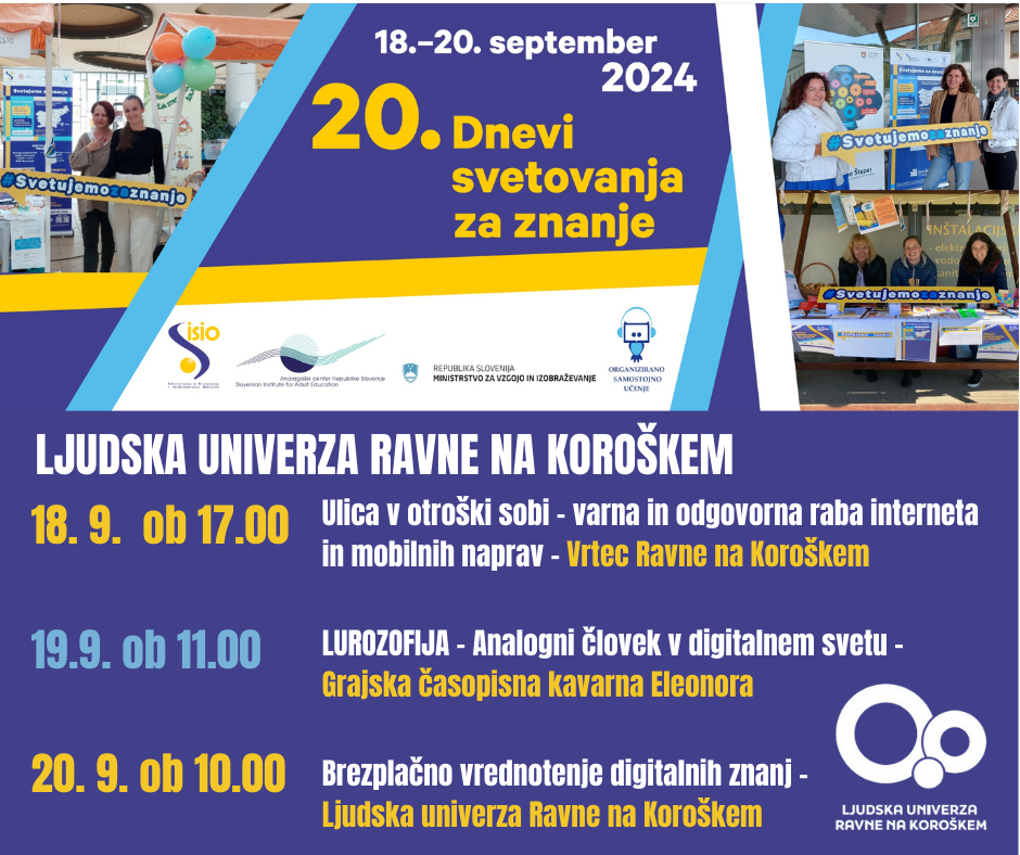 Vabimo vas na izobraževanje, namenjeno izvajanju programov neformalnega izobraževanja za pridobivanje osnovnih in naprednih digitalnih kompetenc za prebivalce Republike Slovenije, …