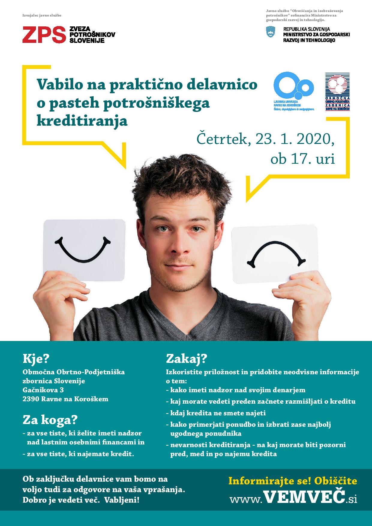 Na delavnici se boste preko praktičnih nasvetov seznanili, kako bolje upravljati s svojim denarjem in postopkom najema kredita, katere so …