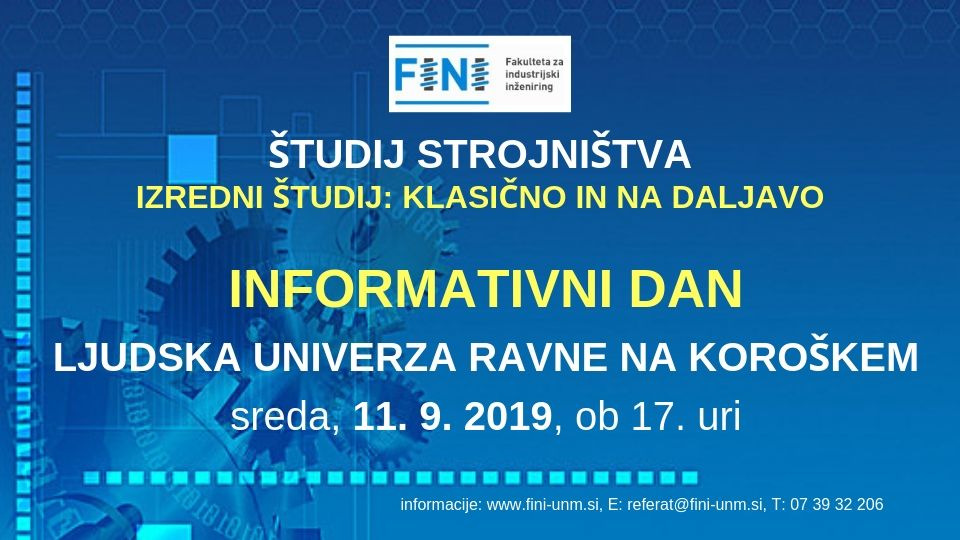 ŠTUDIJ STROJNIŠTVA – izredni (klasično in na daljavo) Fakulteta za industrijski inženiring Novo mesto vljudno vabi na informativni dan v …