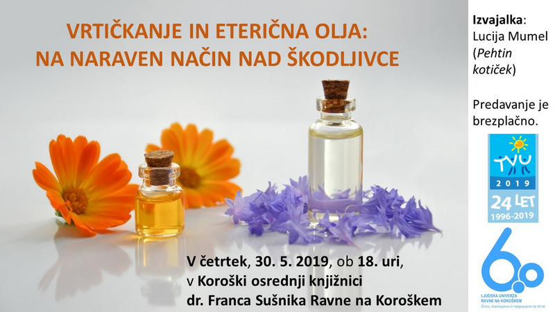 Vabimo vas na predavanje o eteričnih oljih, ki ga bo danes, v torek, 14. 5. 2019, ob 18. uri, v …
