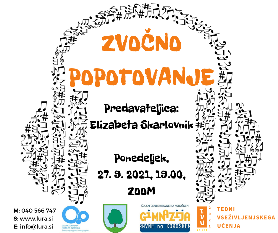 POLJUDNOZNANSTVENO PREDAVANJE »ZVOČNO POPOTOVANJE« Tudi v jesenskem času nadaljujemo s poljudnoznanstvenimi predavanji, ki jih organiziramo trije ustvarjalci: Ljudska univerza Ravne …