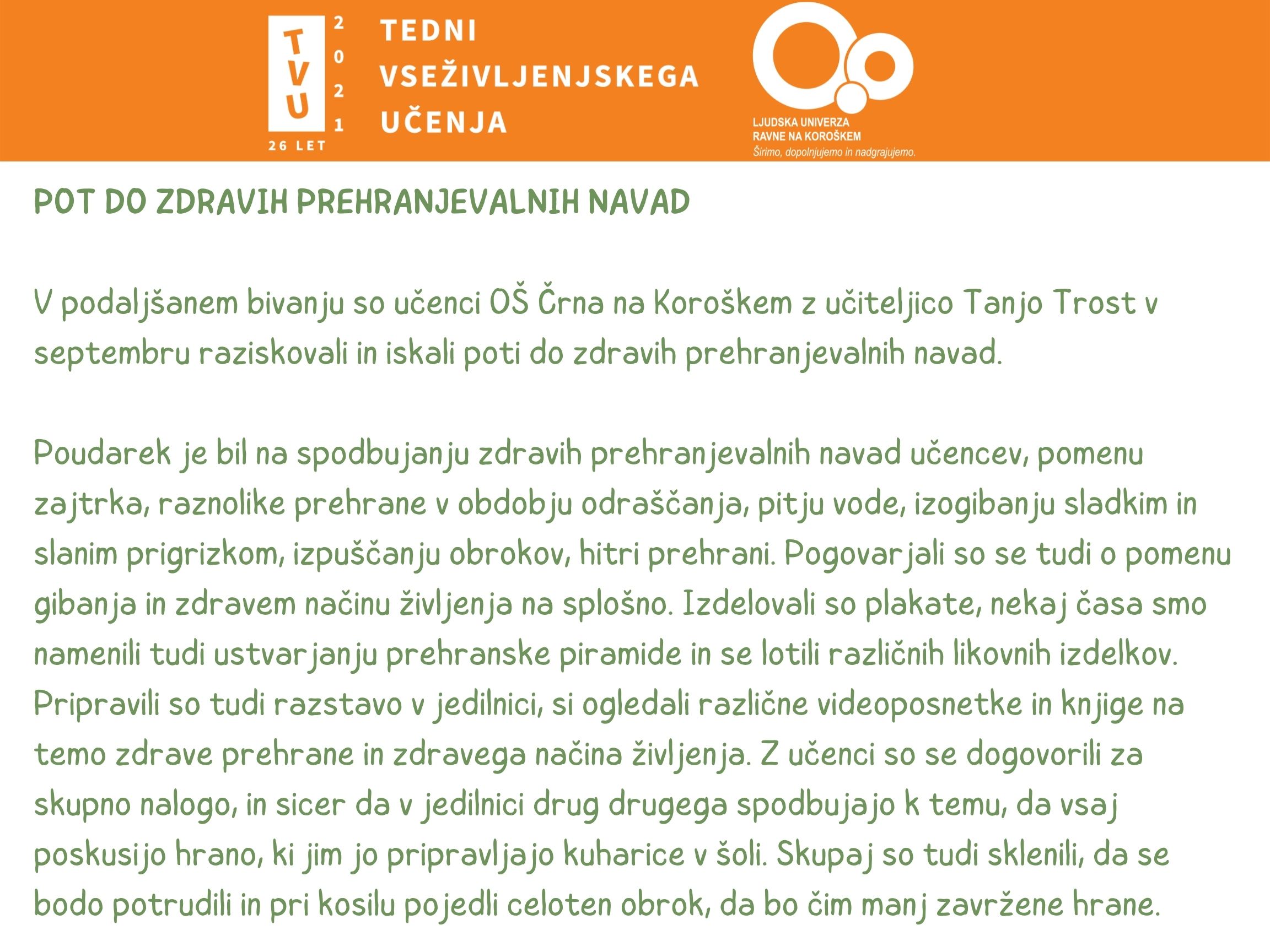 - OŠ Vuzenica > Teden vseživljenjskega učenja – sodelovanje z Društvom upokojencev Vuzenica > 24. 9. 2021 > https://www.osvuzenica.si/teden-vsezivljenjskega-ucenja-sodelovanje-z-drustvom-upokojencev-vuzenica/